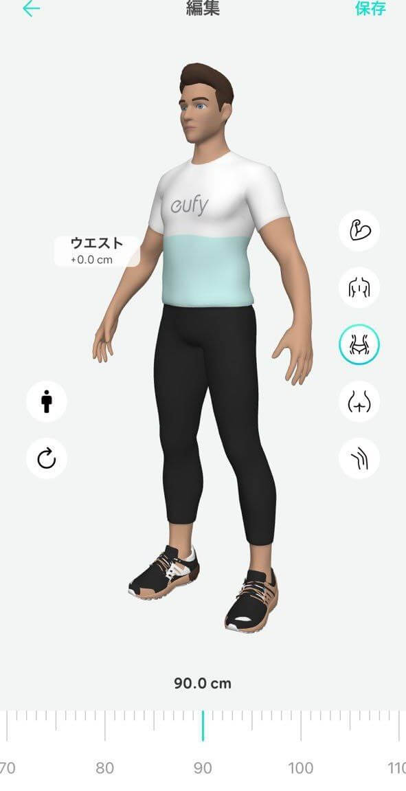 この体重計のユニークな点として、身体測定値も記録できることが挙げられます。測定するためのメジャーも付いており、以下の部位のサイズを測定できます: