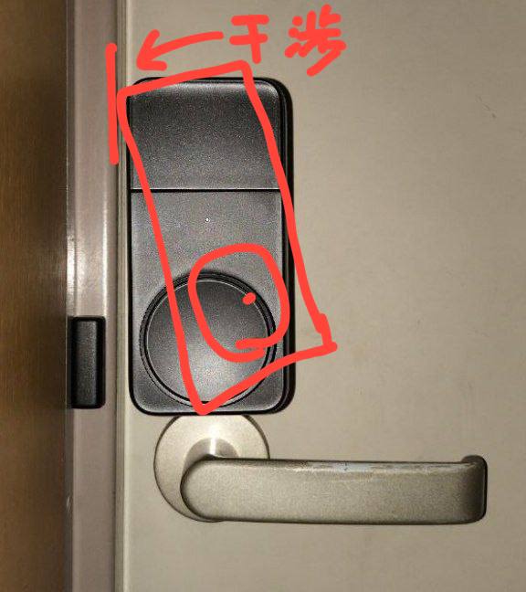 スマートロックの本体が斜めっていると、扉と干渉するので、取り付ける位置を決める時には、ドアを開いてみて干渉しないかをチェックしたほうがいいです。